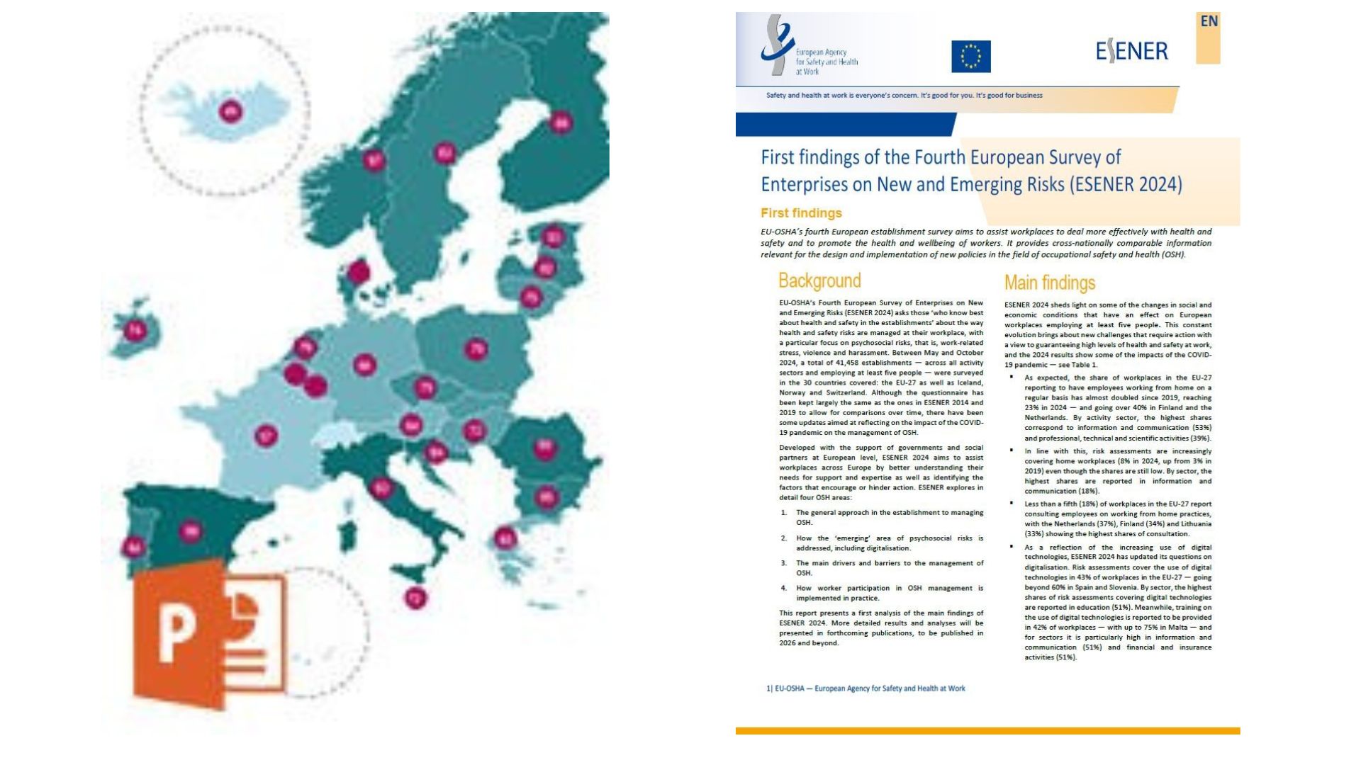 ’Această a 4-a ediție a ESENER face posibilă comparația cu rezultatele ESENER 2014 și 2019, așa cum au fost raportate chiar de reprezentanții locurilor de muncă chestionați’ (Sursa: Website-ul EU OSHA / ESENER 2024).